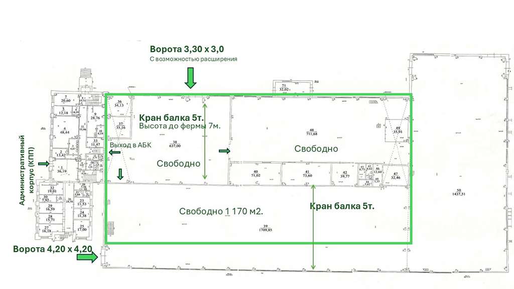 Возможность дополнительно арендовать офисные и бытовые помещения в примыкающем здании АБК.